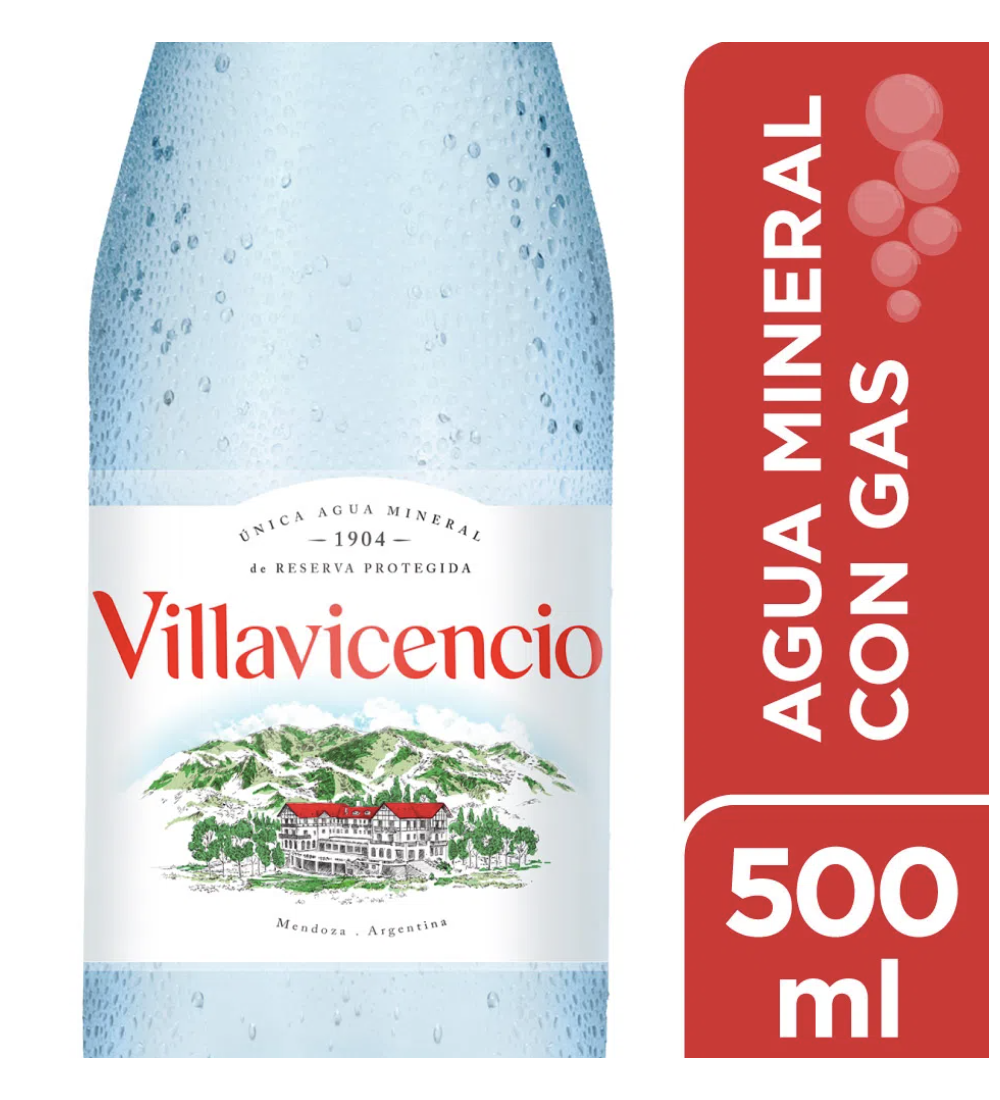 Agua Villavicencio con gas, una opción refrescante y burbujeante en 500 cc.