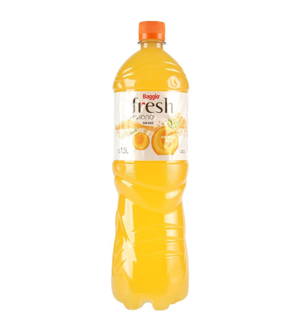 Agua Saborizada Baggio Fresh de Naranja, una opción refrescante y deliciosa en 1,5 litros.