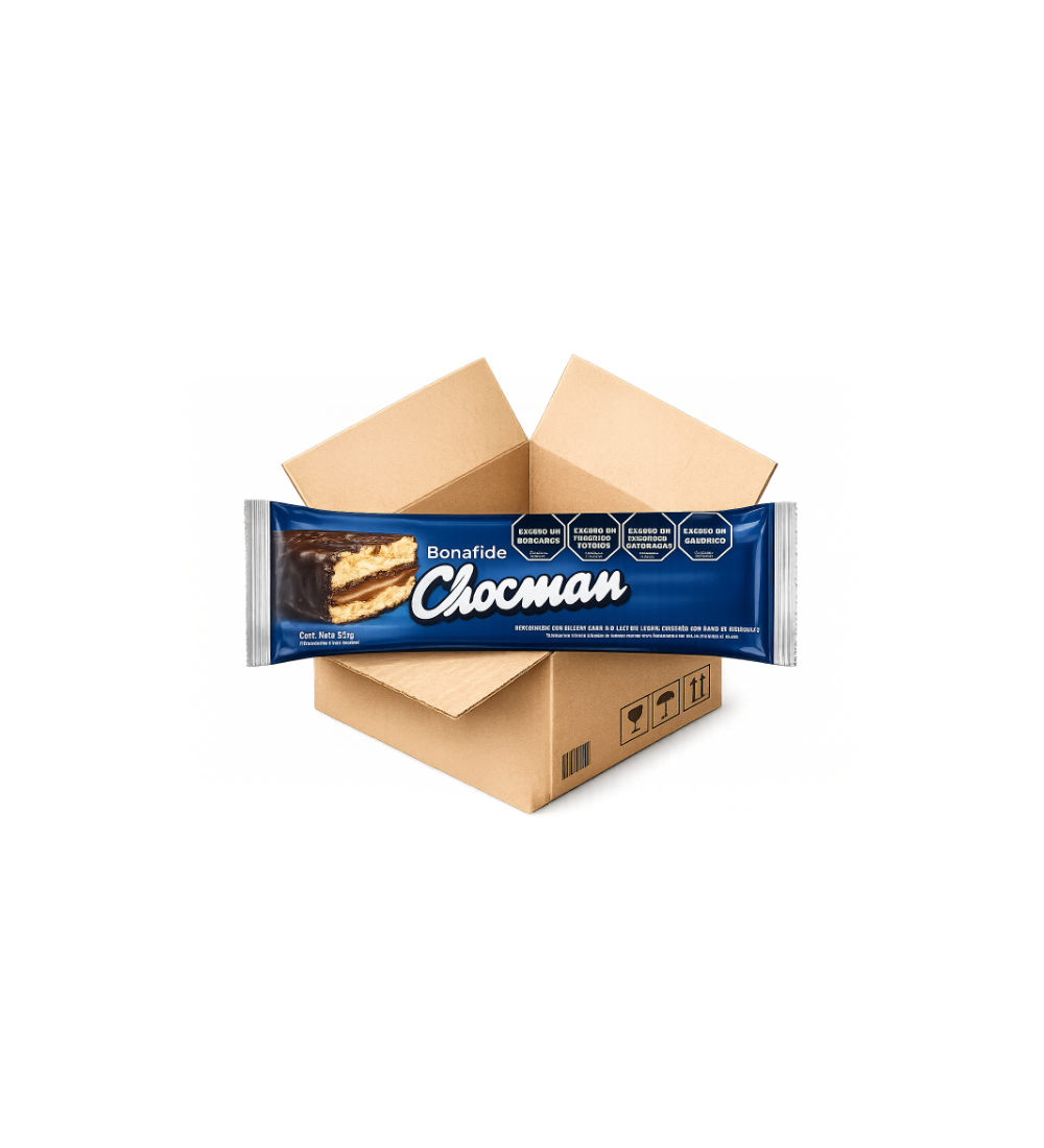 ¡Clásico que enamora! El Chocman de chocolate es ese alfajor que te transporta a la infancia con cada mordisco. Disfrutá de su suave relleno y la cobertura de chocolate que se derrite en tu boca. Perfecto para darte un gusto a cualquier hora del día, llevar en la mochila o compartir con quien más quieras. ¡Este pack de 18 unidades es ideal para tener siempre a mano!
