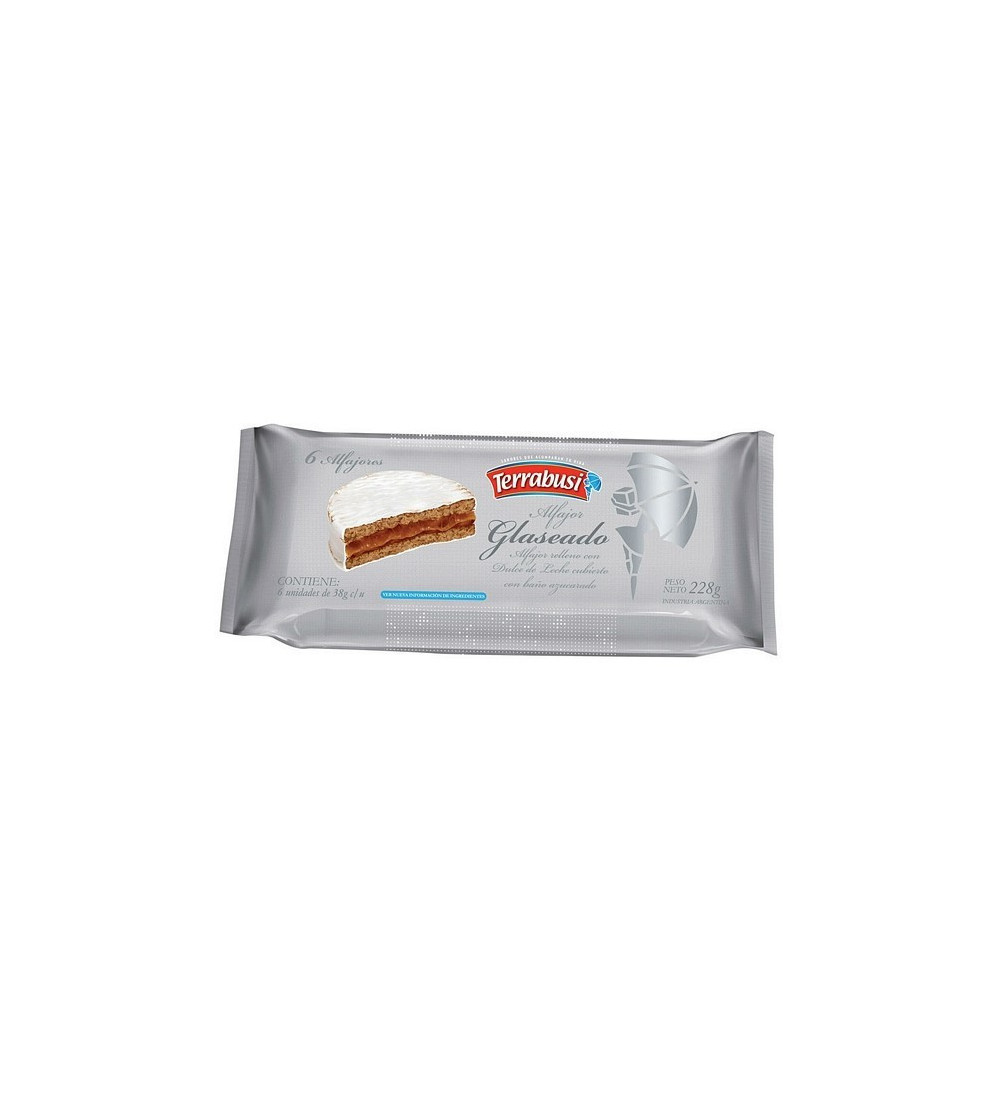 ¡Un clásico irresistible! El Alfajor Terrabusi Glaseado es la combinación perfecta de dos suaves galletitas rellenas con dulce de leche y cubiertas con un delicioso glaseado. Ideal para darte un gusto en cualquier momento del día, compartir con amigos o tener siempre a mano para esos antojos repentinos. Este pack de 6 unidades es perfecto para tener stock en casa, en la oficina o para tu negocio. ¡Disfrutá de la calidad y el sabor inconfundible de Terrabusi!