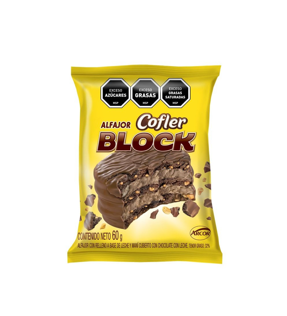 Dale un gusto a tu paladar con el Alfajor Cofler Block Triple. Tres capas de galleta rellenas con el delicioso dulce de leche Cofler y cubiertas con el inigualable chocolate Block. Un alfajor irresistible para disfrutar en cualquier momento del día. Perfecto para acompañar tu café de la tarde o para darte un capricho dulce después de comer. ¡Un clásico que nunca falla!