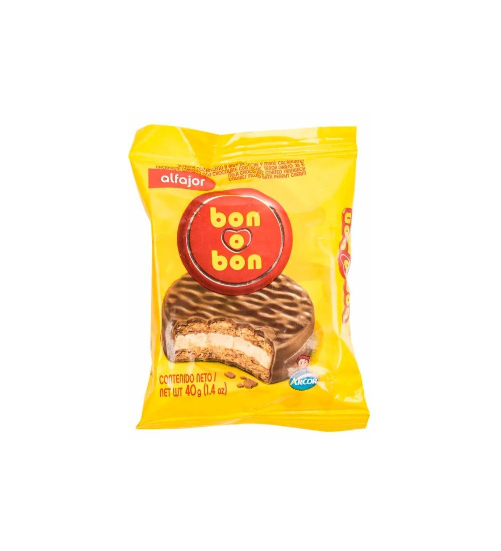 Alfajor Bon o Bon Negro, el sabor clásico con un toque de chocolate intenso.
