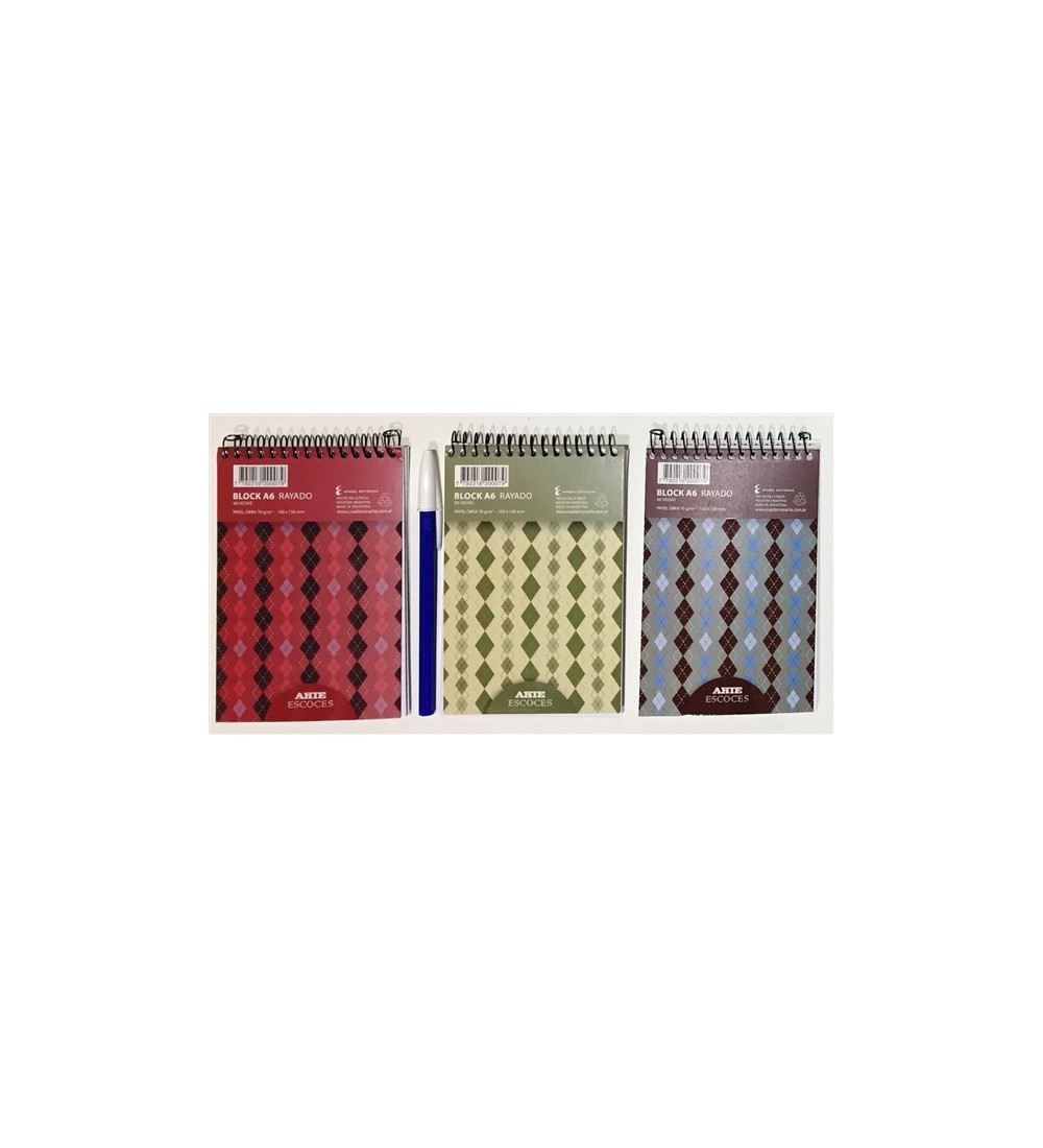 Block Arte A6 Escocés con 60 hojas rayadas, ideal para llevar a todos lados.