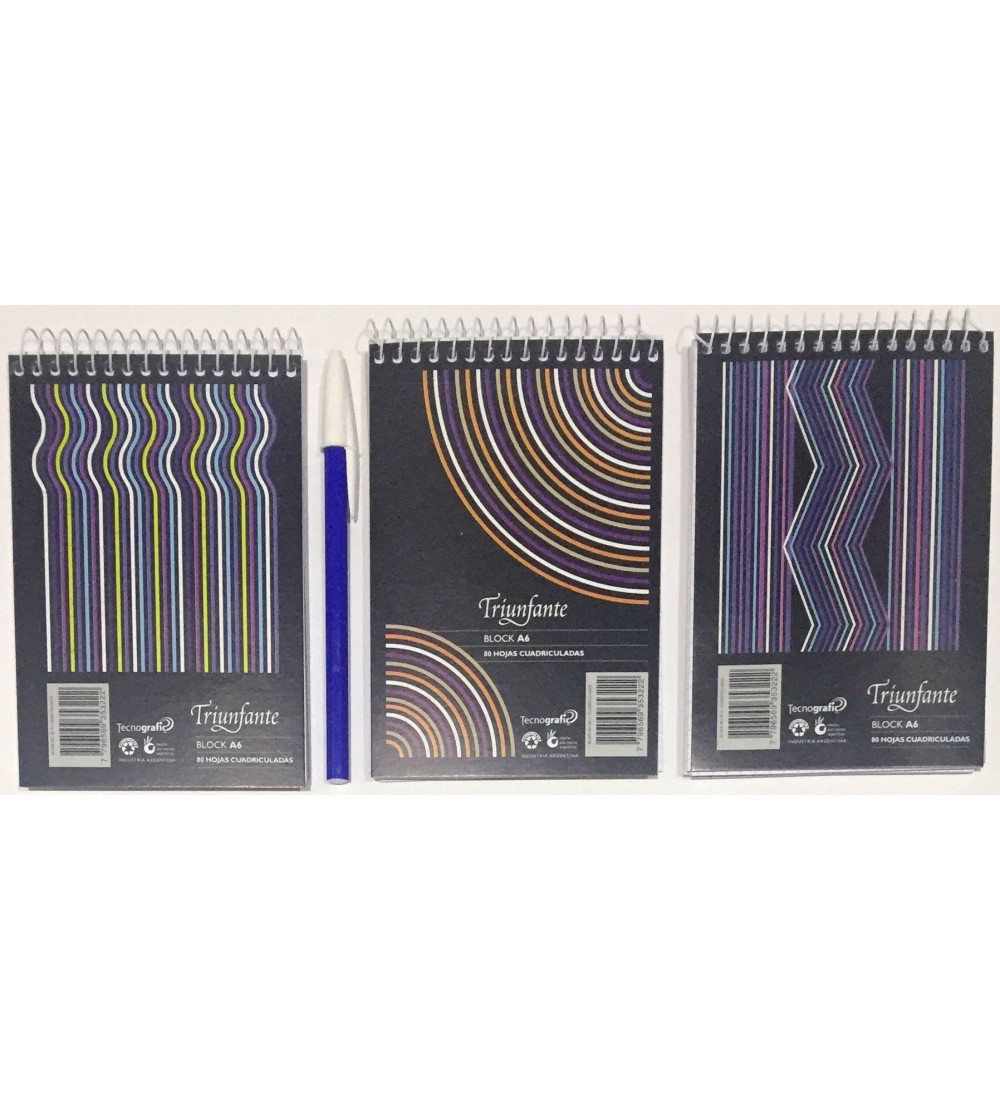 Este Block Triunfante A6 cuadriculado es perfecto para llevar a todos lados. Con sus 80 hojas, tenés espacio suficiente para tomar notas, hacer cálculos o dibujar lo que se te ocurra. Su tamaño compacto A6 lo hace ideal para meter en tu mochila, cartera o bolsillo. ¡Llevá tus ideas siempre con vos con este práctico block cuadriculado!