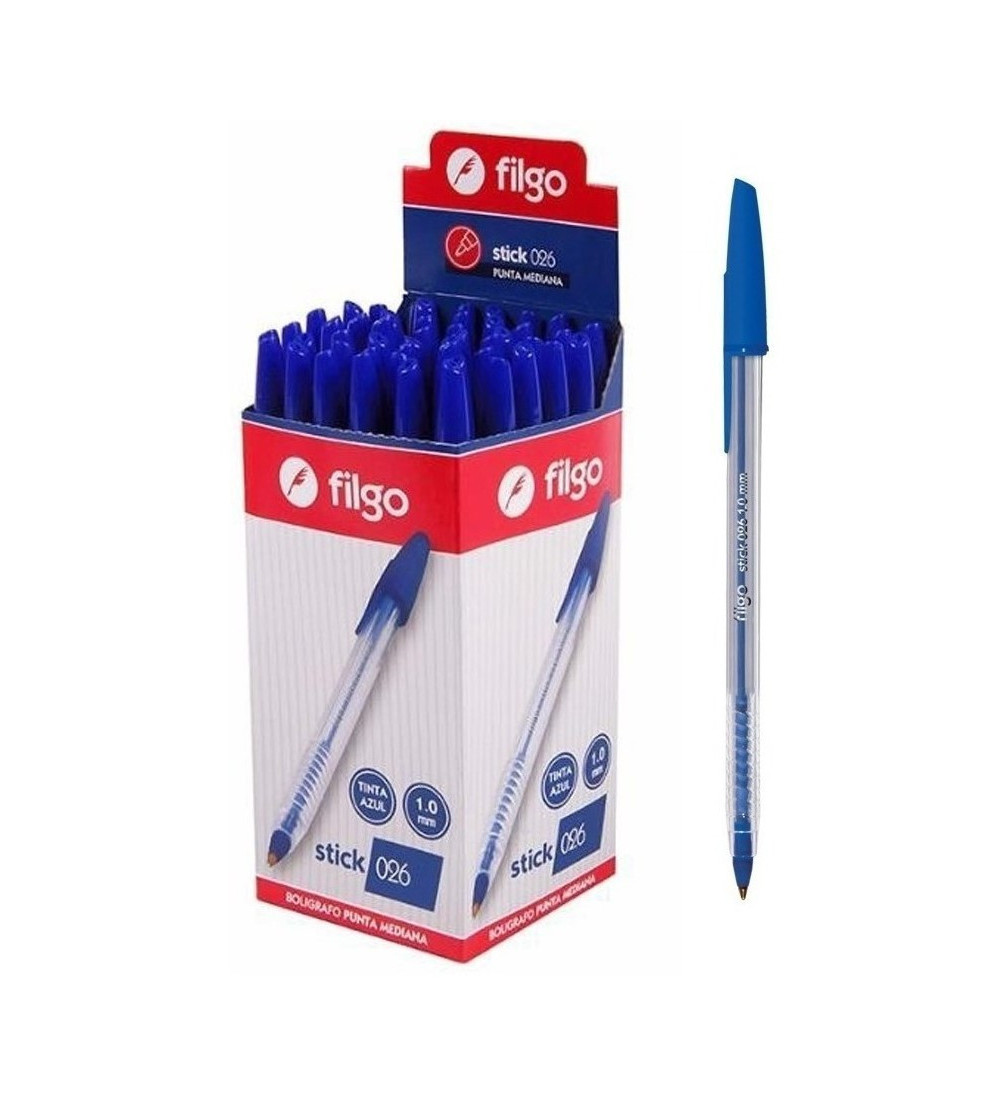 Bolígrafo Filgo Stick 1mm x 50 unidades azul para escribir con fluidez.