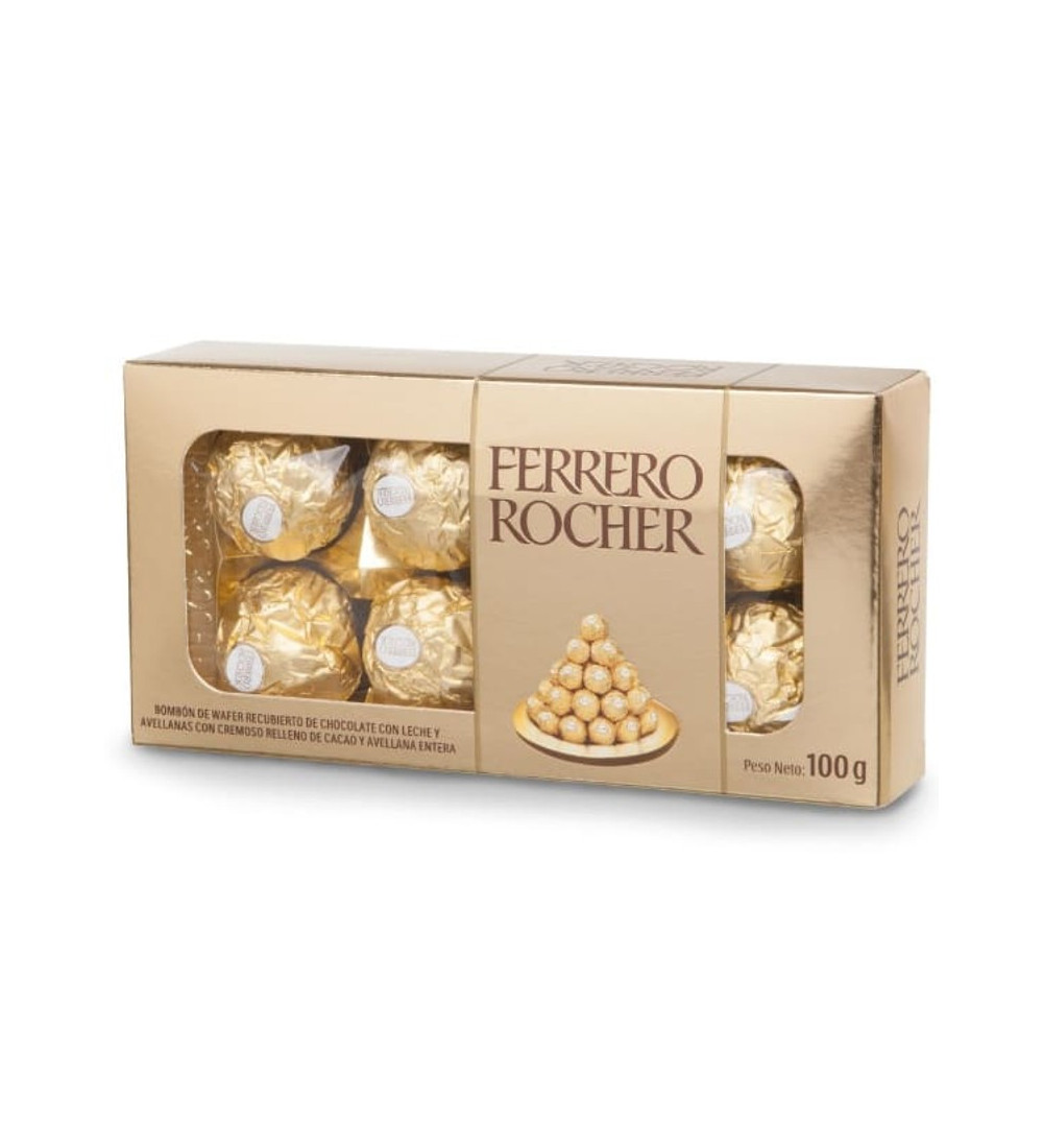 Regalate un momento de lujo con los Bombones Ferrero Rocher. Esta caja de 8 unidades es perfecta para compartir en ocasiones especiales, para regalar a alguien querido o simplemente para darte un gusto. Cada bombón es una experiencia única, con su crujiente cobertura de avellanas, su cremoso relleno y su corazón de avellana entera. ¡Un placer exquisito que te encantará!