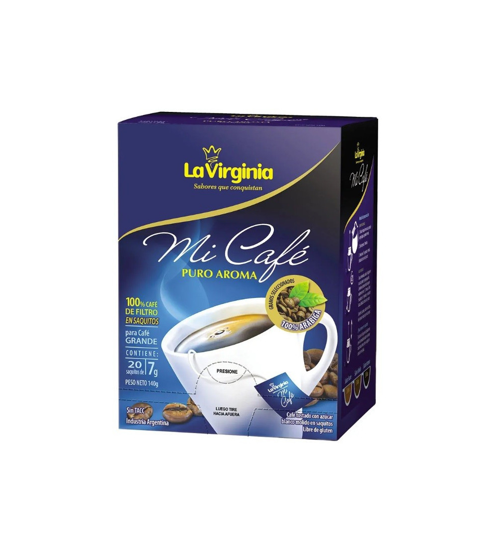 Disfrutá de un café con más cuerpo y sabor con el Café La Virginia Mi Café en saquitos individuales. Cada caja contiene 20 unidades de 7 gramos, perfectas para preparar una taza de café con un aroma y sabor intensos. Ideal para aquellos que buscan un café con más personalidad. Llevá al trabajo, de viaje o tenelo en casa para esos momentos en los que necesitás un café que te despierte. ¡Llevá tu caja de saquitos y disfrutá de un café con un sabor único!
