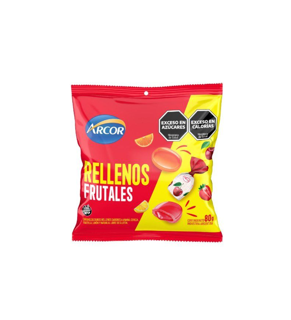 Caramelos Arcor rellenos frutales, una explosión de sabor en cada caramelo duro.