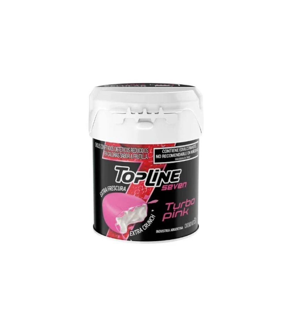 Refrescá tu aliento y disfrutá del delicioso sabor a frutas del Chicle Top Line Seven Turbo Pink.