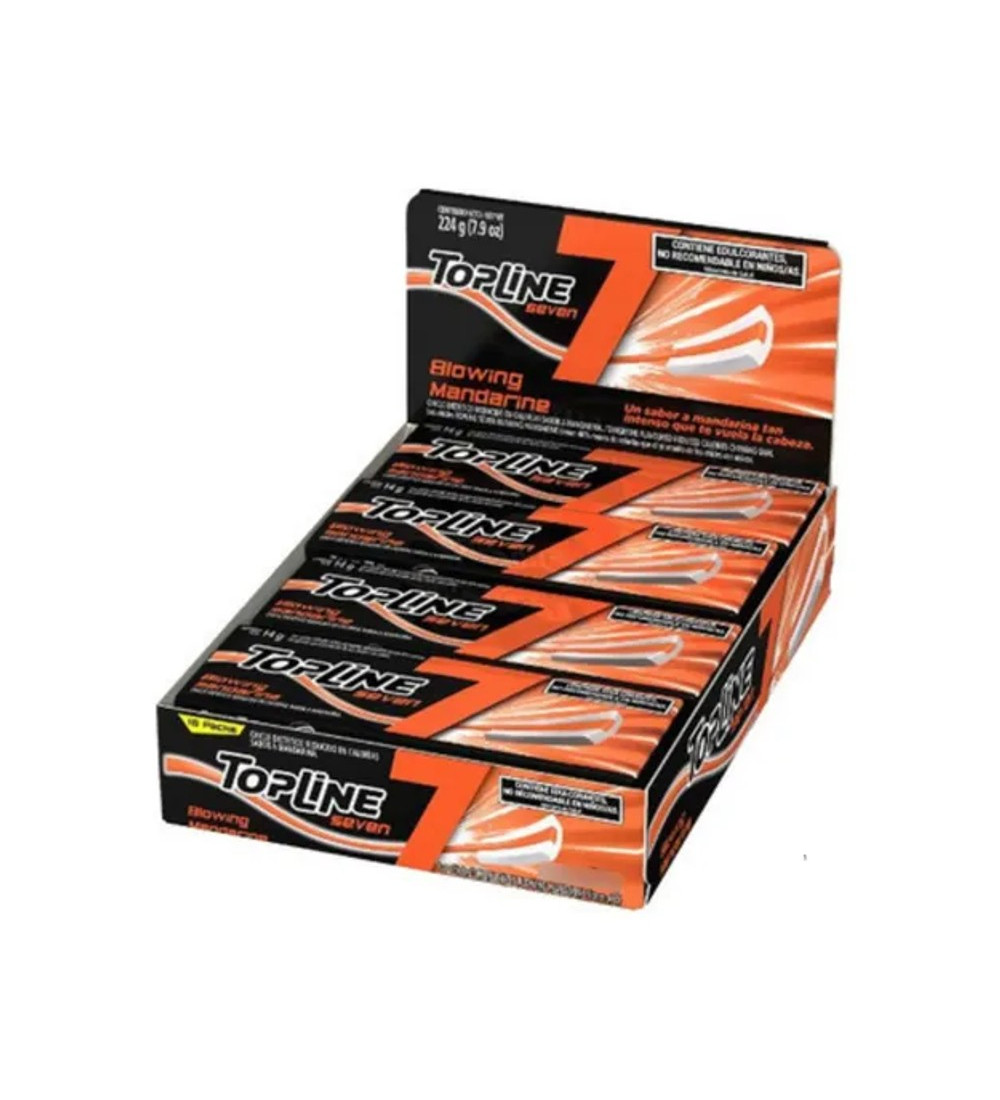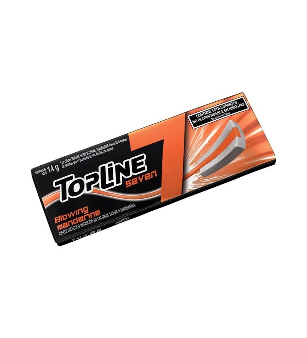 Chicle Top Line Seven Mandarina: 16 unidades de frescura y sabor a mandarina.