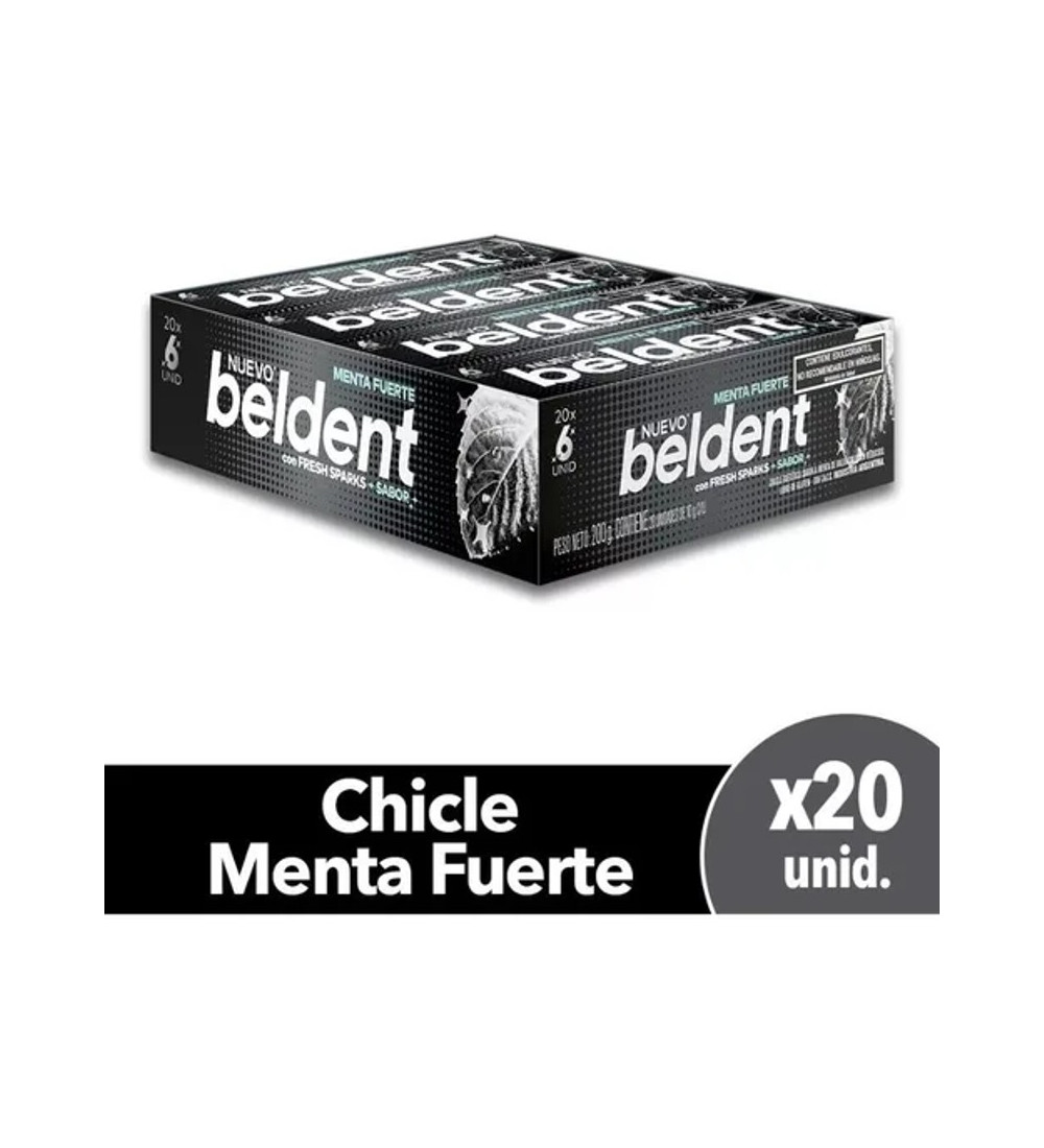 CHICLE BELDENT MENTA FUERTE X 20 UNIDADES