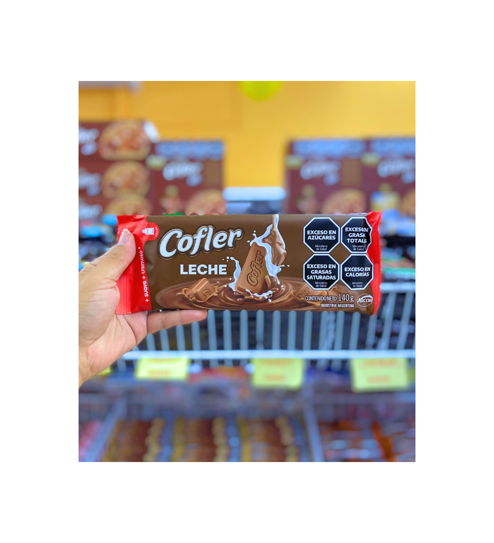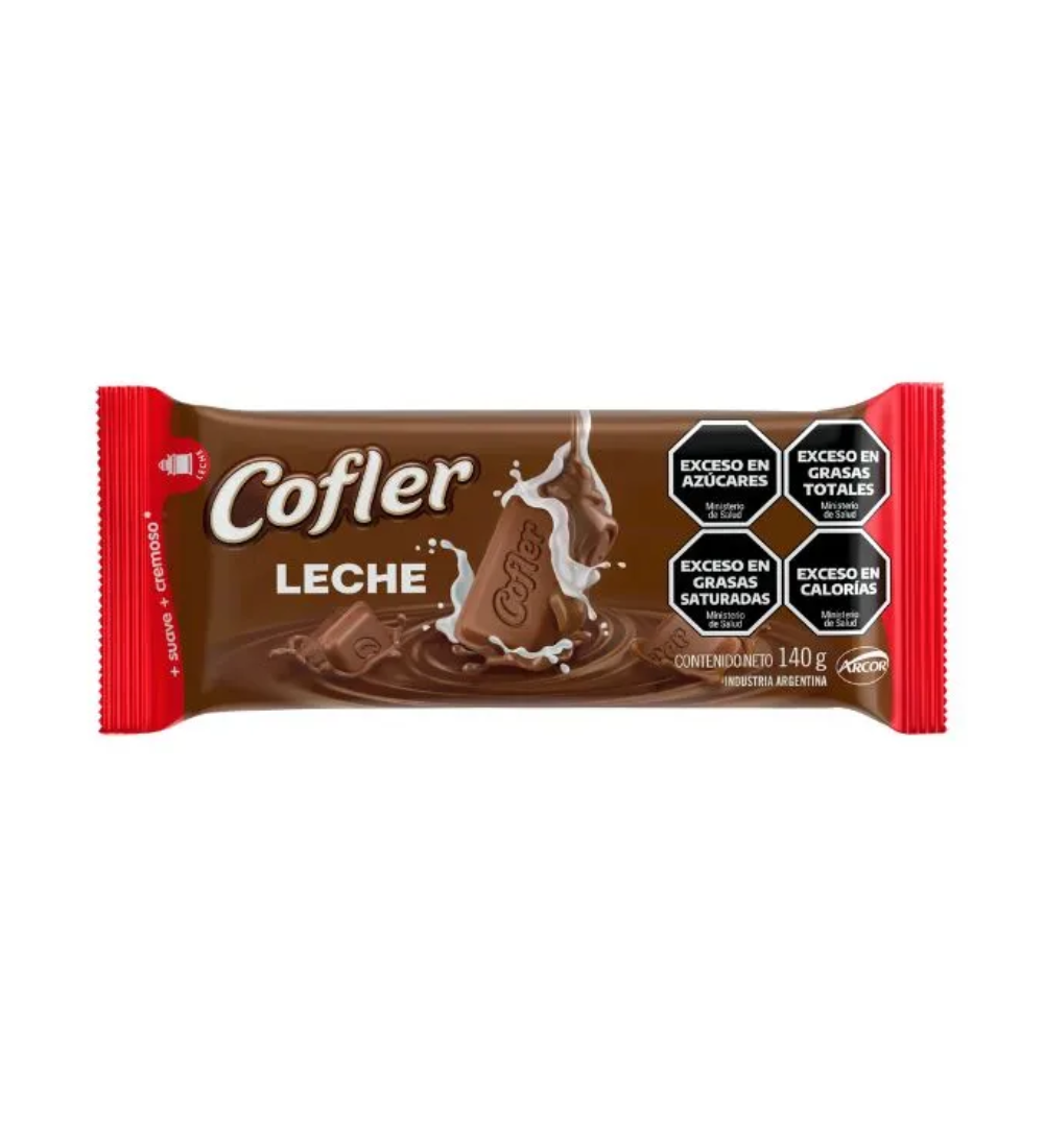 Chocolate Cofler leche, el sabor clásico y cremoso que nunca falla, en una tableta de 140 gramos.