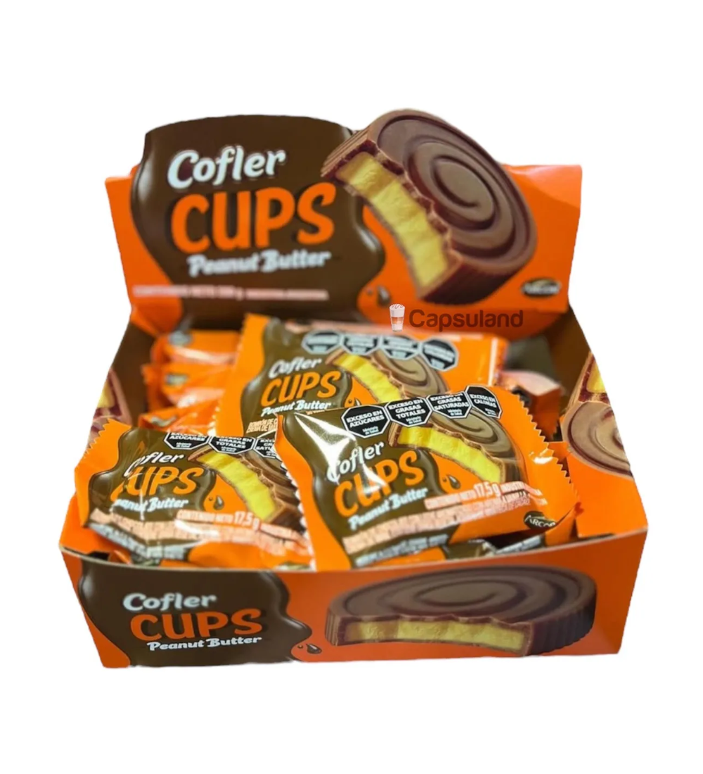 Chocolate Cofler Cups Maní, la combinación perfecta de chocolate con leche y maní en un pack de 16 unidades.
