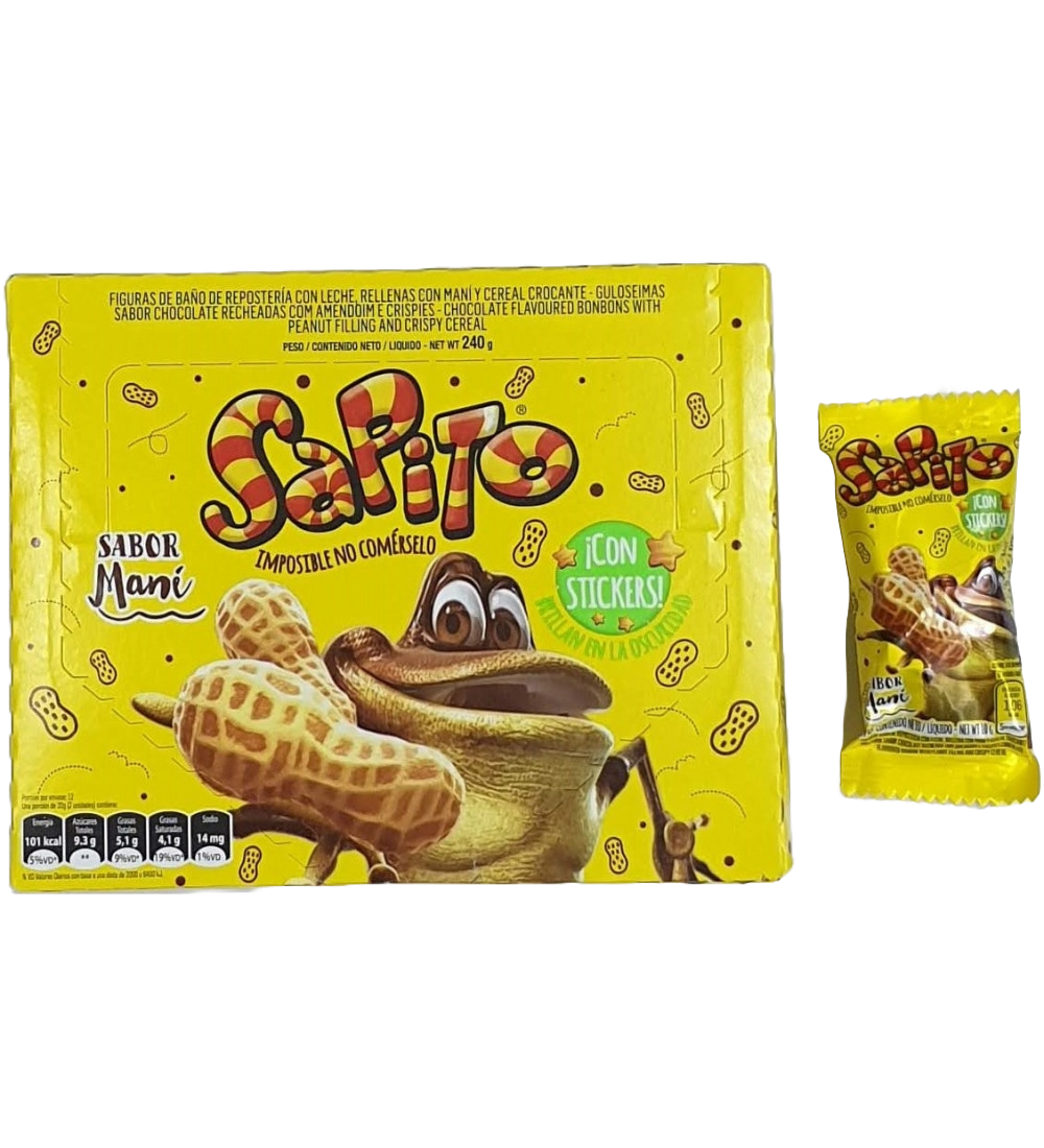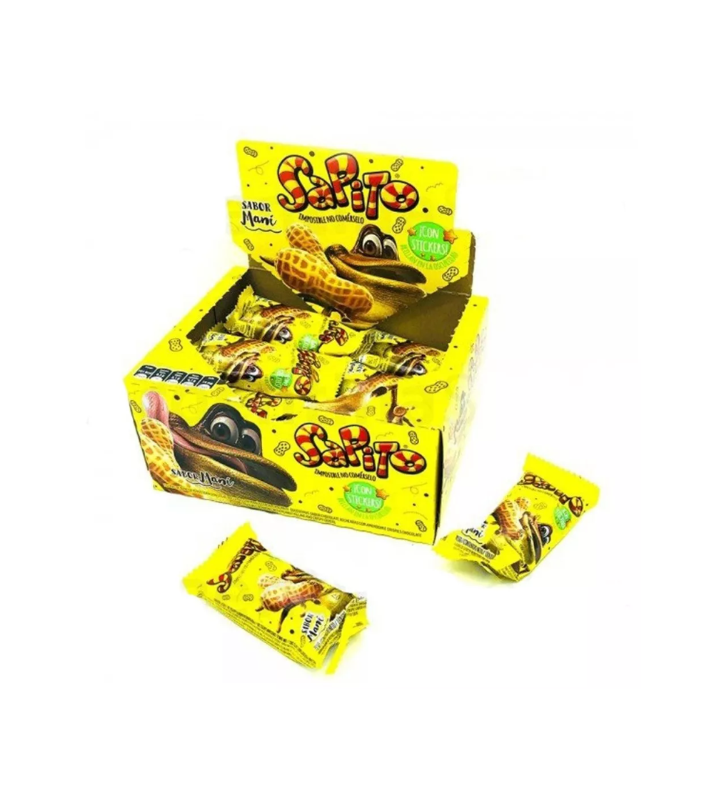 Chocolate Sapito con maní: el clásico sabor que te transporta a la infancia, ahora en un pack de 24 unidades.