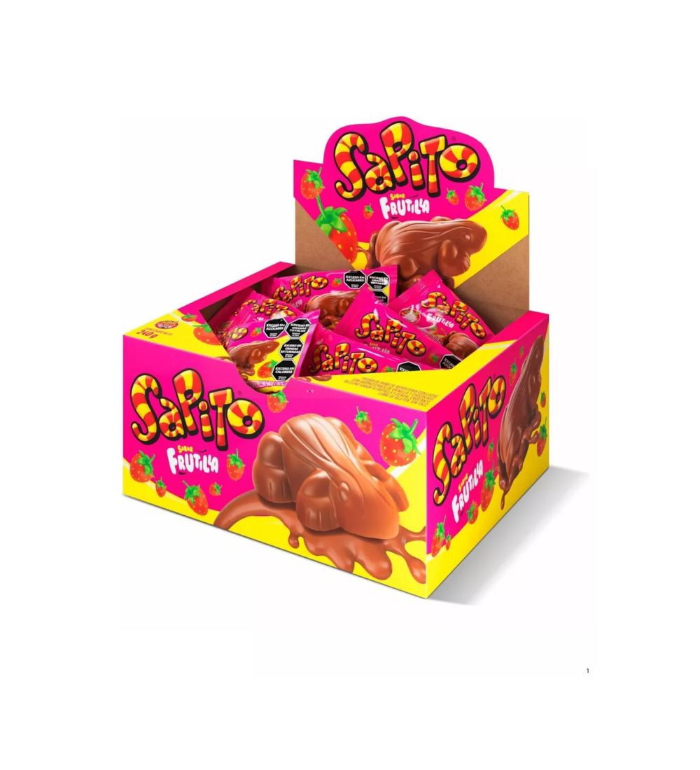 Chocolate Sapito de frutilla: el sabor frutal que te transporta a la infancia, ahora en un pack de 24 unidades.