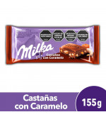 Disfrutá del exquisito Chocolate Milka Castañas con Caramelo en su presentación de 155 gramos.