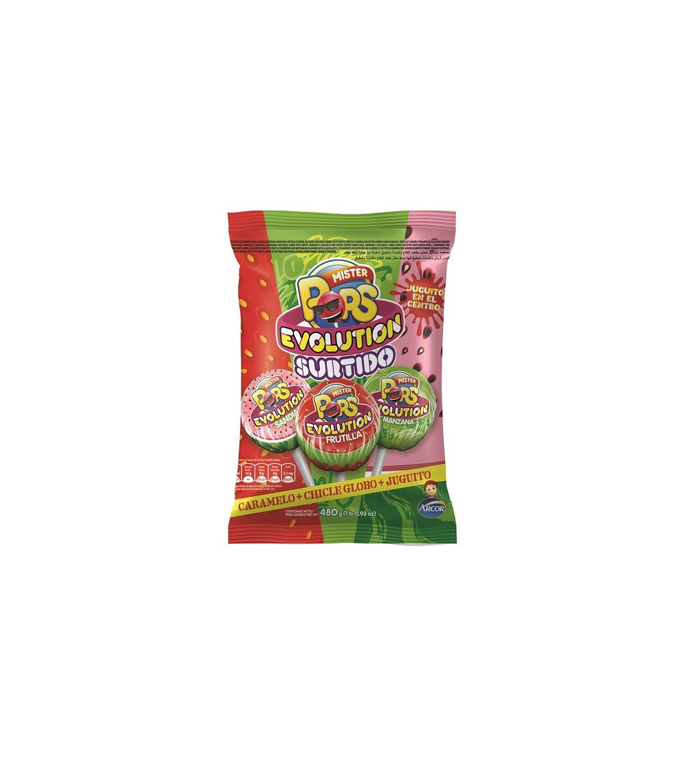 Chupetines Evolution surtidos, una explosión de sabores en un pack de 24 unidades.