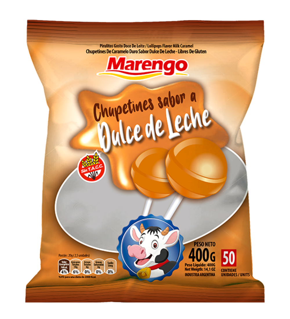 Chupetines Marengo de dulce de leche, un clásico argentino en un pack de 50 unidades.