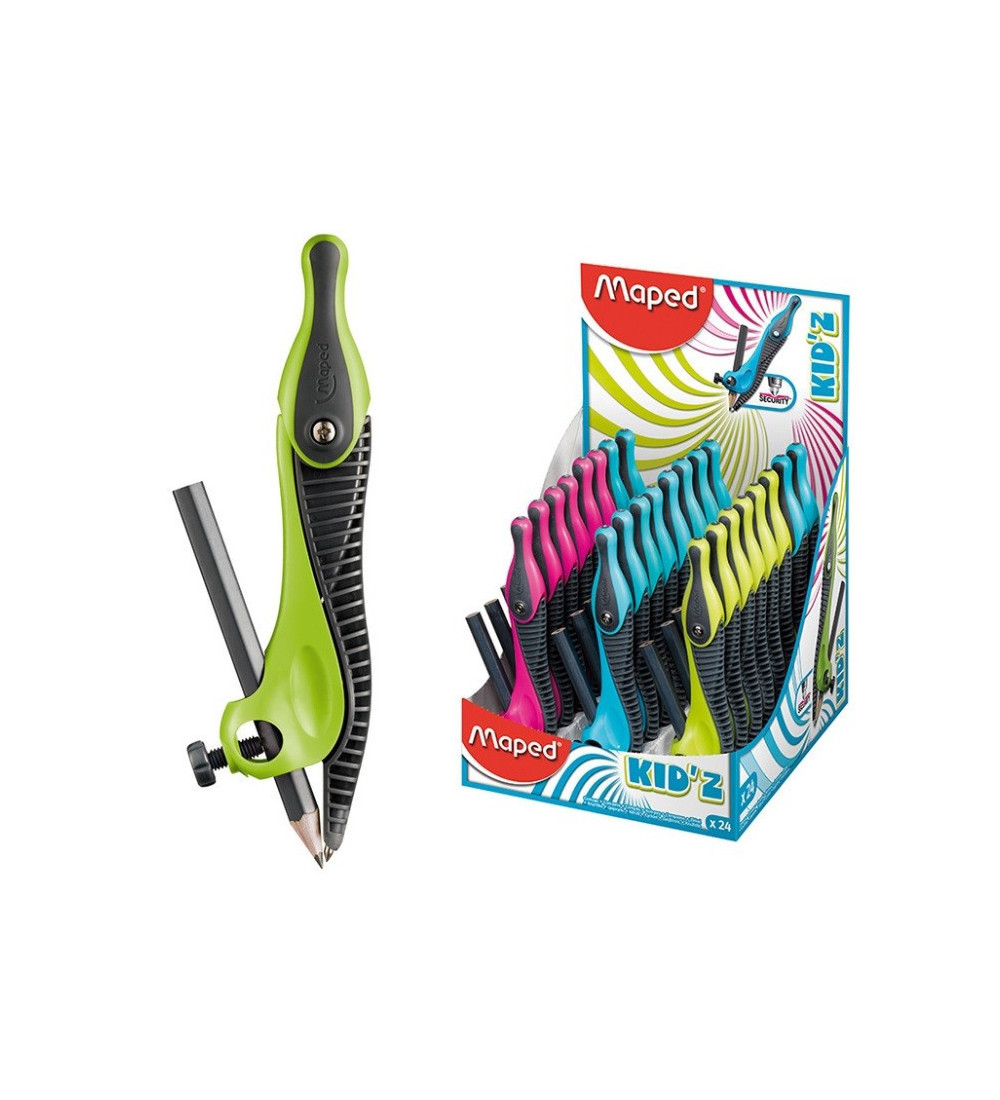 Compás Maped Kid'z con lápiz, ideal para que los niños aprendan geometría de forma segura.