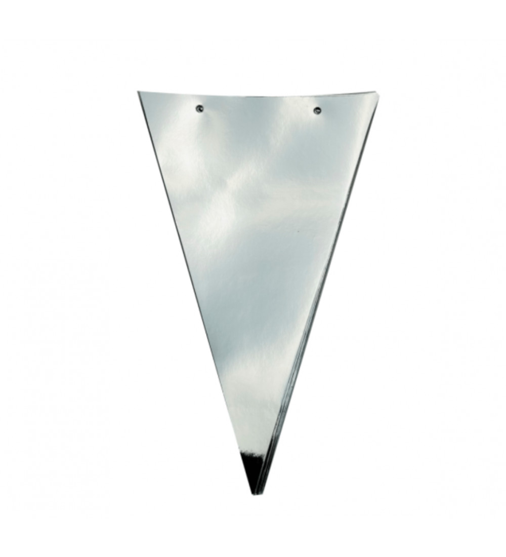 Agregá un toque brillante y moderno a tu fiesta con este banderín holográfico plateado.