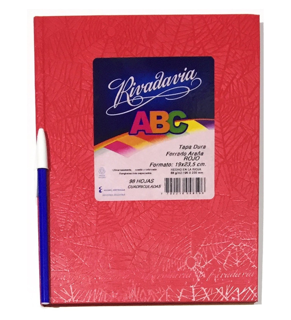 CUADERNO RIVADAVIA ABC 98 HOJAS CUADRICULADO ROJO