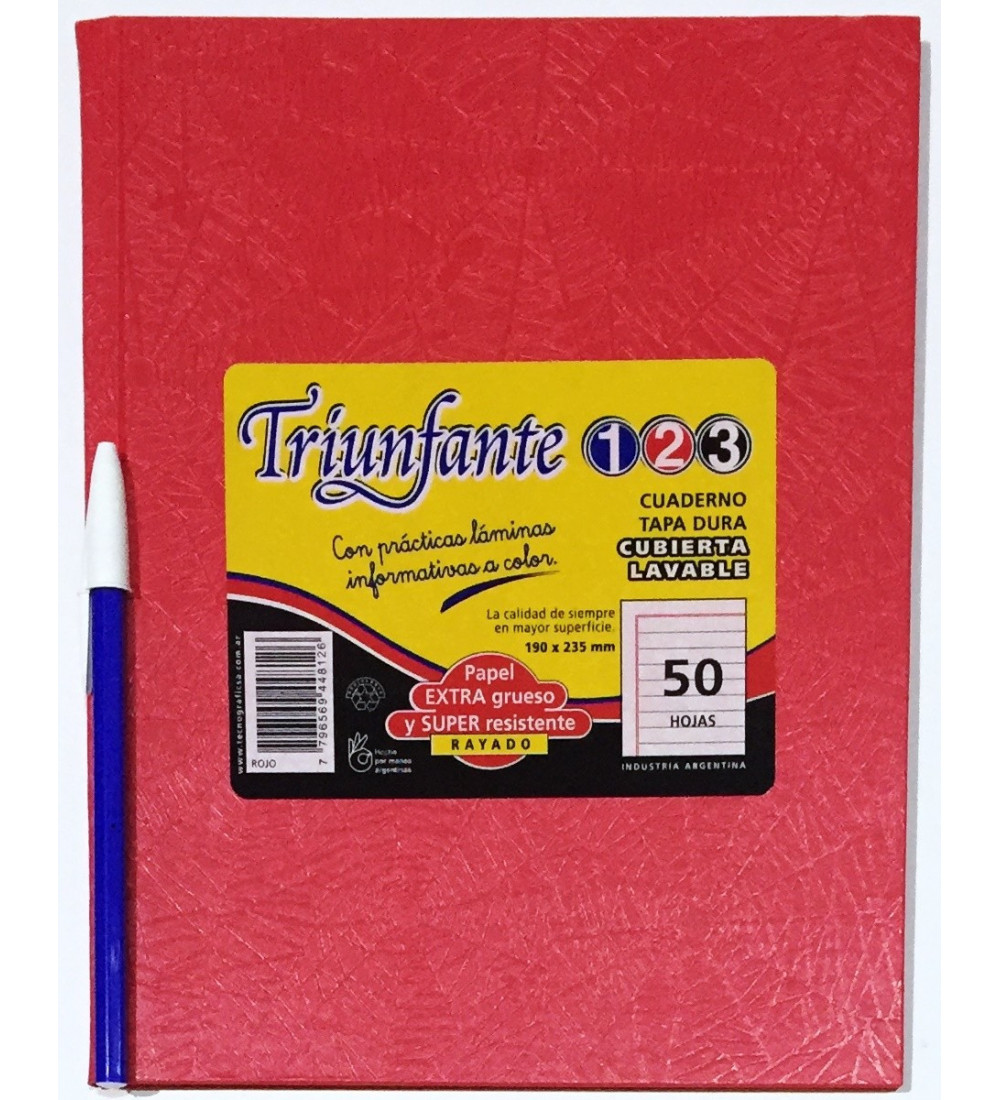 CUADERNO TRIUNFANTE 123 50 HOJAS RAYADO ROJO