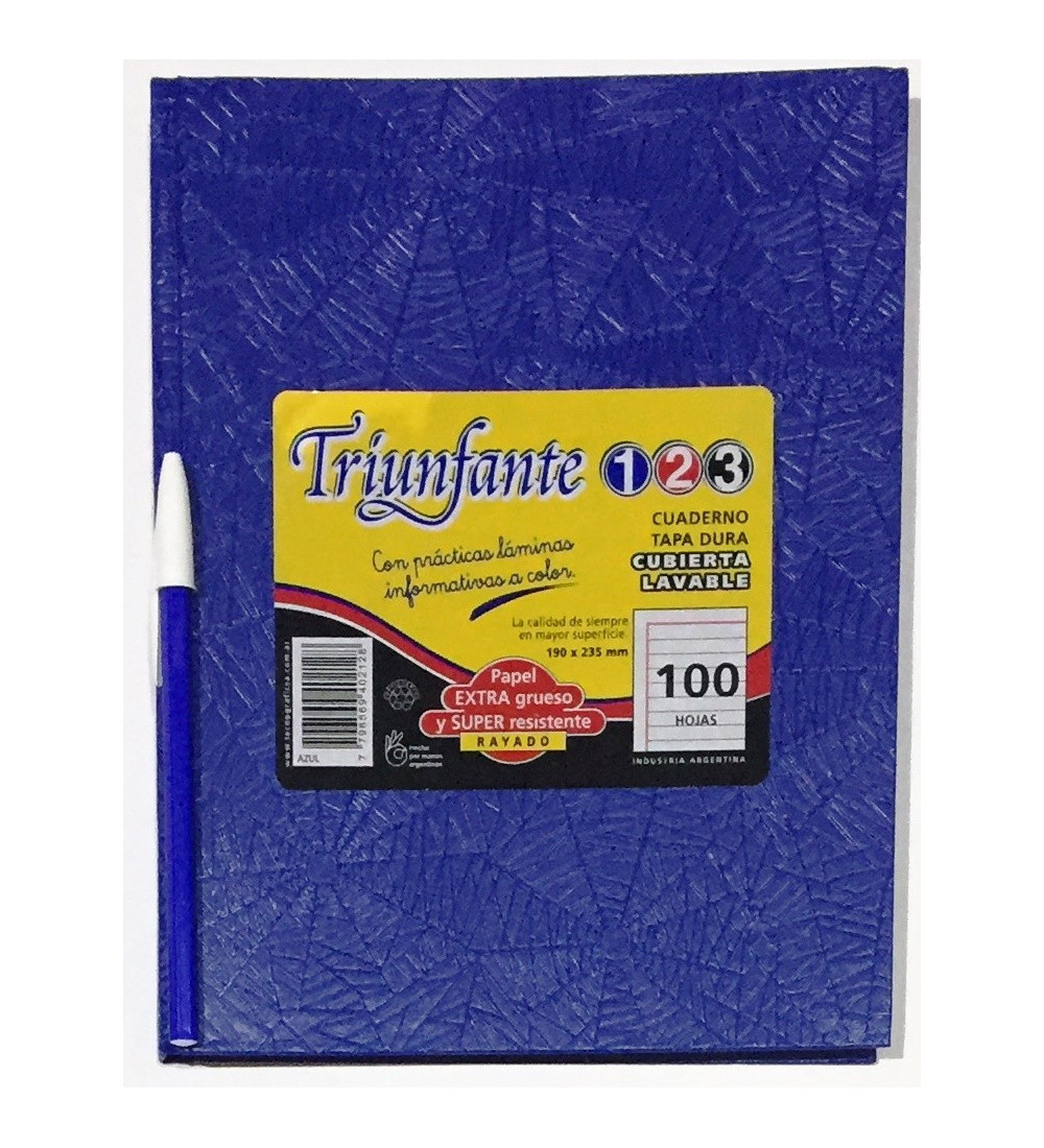 El Cuaderno Triunfante 123 es tu aliado perfecto para tomar apuntes, dibujar o escribir tus ideas. Con 100 hojas rayadas de color azul, este cuaderno te ofrece espacio suficiente para plasmar todo lo que necesites. Su diseño clásico y resistente lo convierte en una opción ideal para el colegio, la universidad o el trabajo. ¡Conseguí el éxito en tus proyectos con este cuaderno que te impulsa a triunfar!