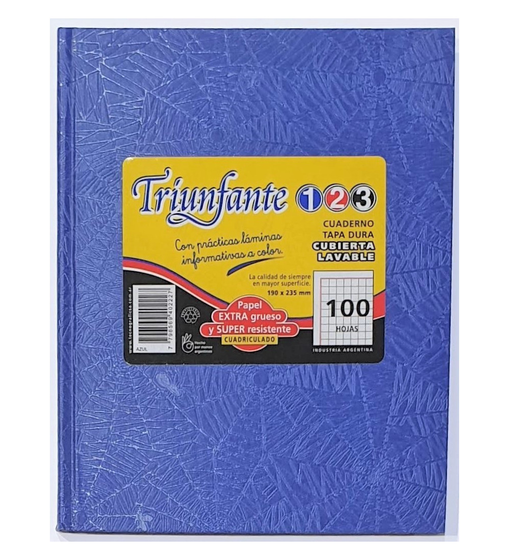 CUADERNO TRIUNFANTE 123 VINIL 100 HOJAS CUADRICULADO AZUL