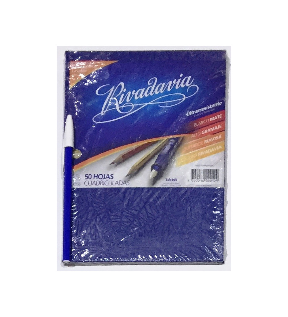 Cuaderno Rivadavia azul cuadriculado de 50 hojas, ideal para estudiantes y organización.