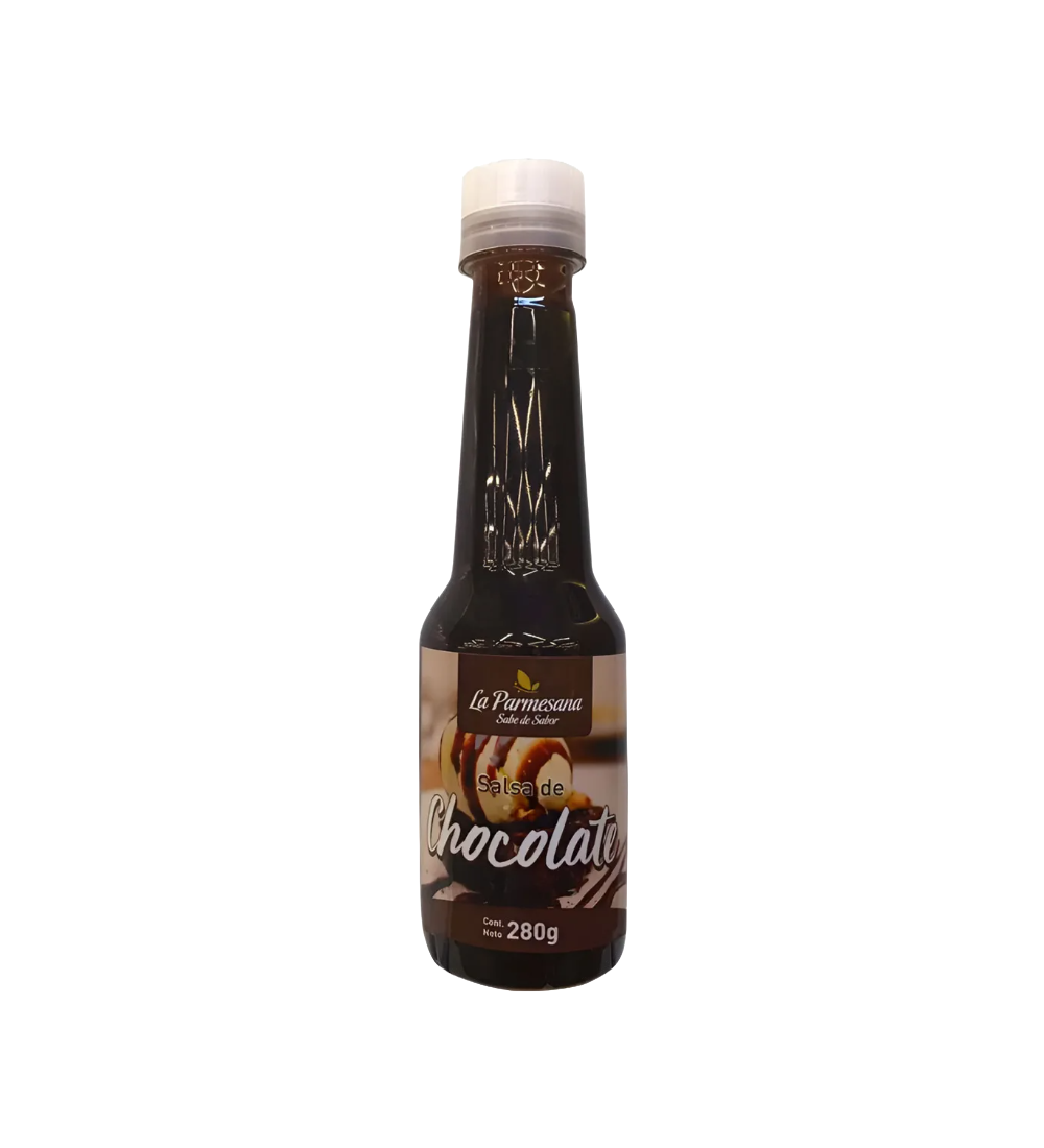 Salsa Parmesana sabor chocolate, ideal para decorar y realzar el sabor de tus postres.