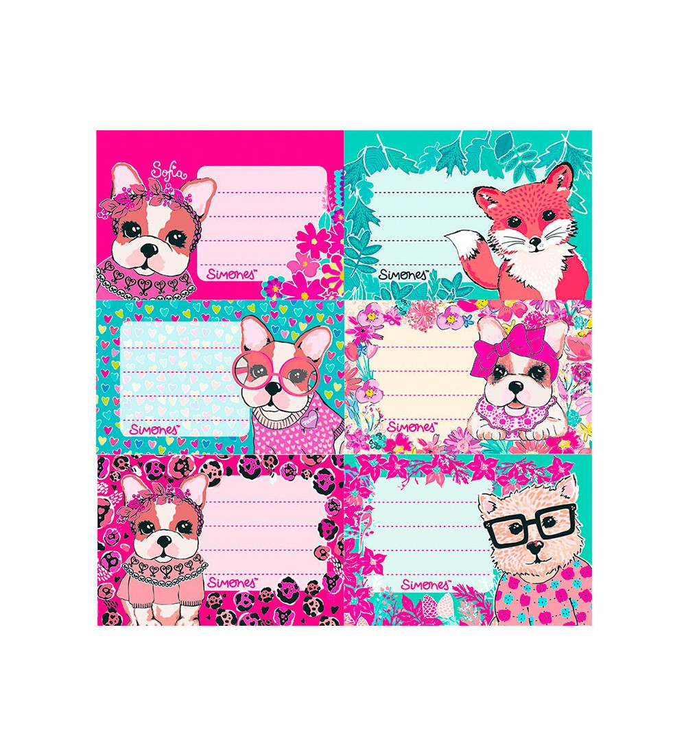 Rótulos Mooving de Simones para personalizar tus útiles con diseños divertidos y originales.