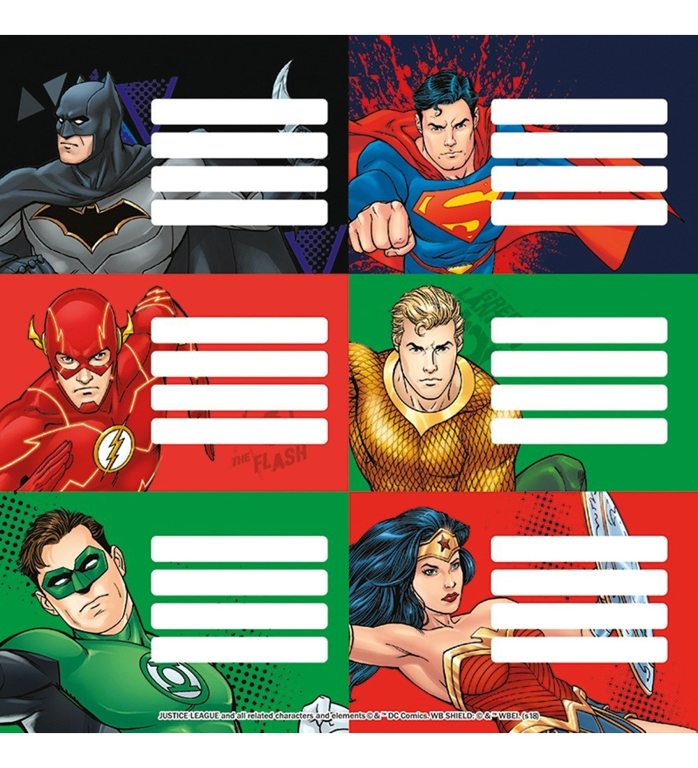 Rótulos Mooving de la Liga de la Justicia para personalizar tus útiles escolares con tus héroes favoritos.
