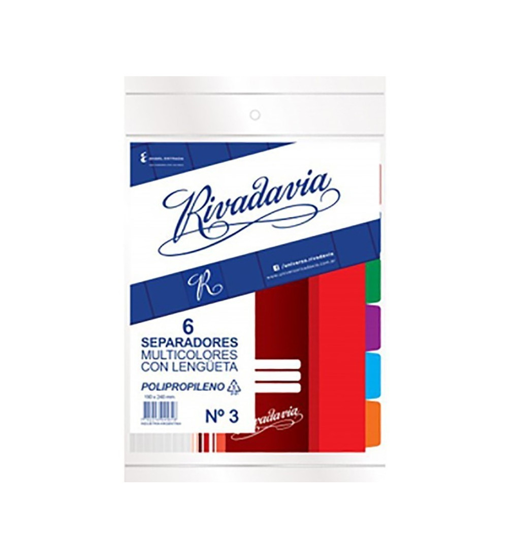 Separador Rivadavia N°3 con 6 hojas, ideal para organizar tus documentos.