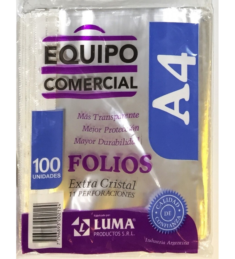 FOLIO EQUIPO COM A4 X 100 UNIDADES