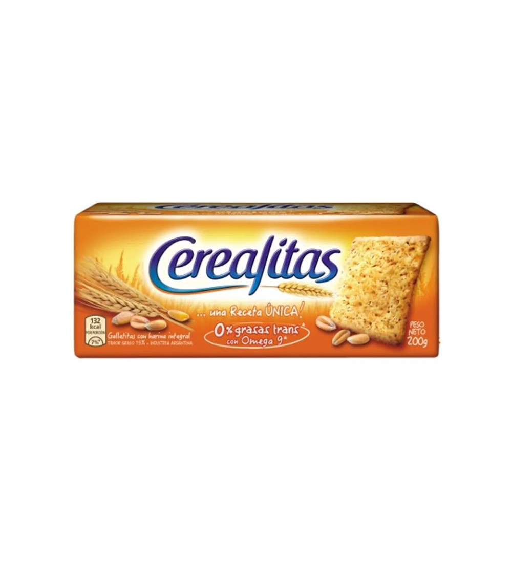 Disfrutá de las clásicas galletas Cerealitas, una opción saludable y deliciosa para tus desayunos y meriendas. Con su sabor suave y textura crujiente, son perfectas para acompañar tu café, té o leche. Llevá estas galletas Cerealitas de 200 gramos al trabajo, a la escuela o simplemente tenelas en casa para disfrutar en cualquier momento. Ideales para toda la familia, las Cerealitas son una opción nutritiva y sabrosa para empezar el día con energía.