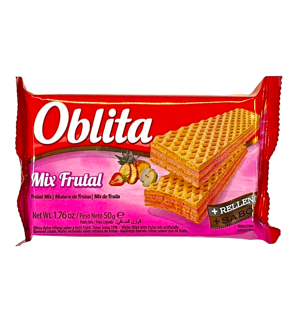 Disfrutá de la crujiente y deliciosa oblea Oblita sabor frutilla, ideal para cualquier momento del día.