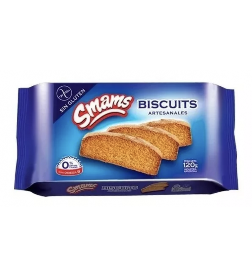 Disfrutá de un snack delicioso y sin gluten con los Biscuits Smams. Ideales para acompañar tu café o té, estos biscuits son perfectos para quienes buscan opciones sin gluten sin sacrificar el sabor. Llevá este paquete de 120 gramos y tené siempre a mano un bocado crujiente y sabroso para disfrutar en cualquier momento del día. Perfectos para llevar al trabajo, a la escuela o simplemente para darte un gusto sin culpas.