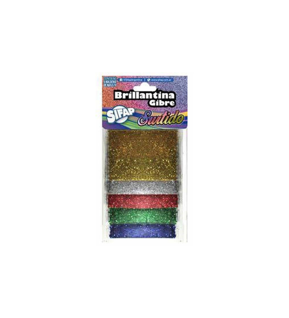 Pack de 5 brillantinas Gibre surtidas para darle brillo a tus creaciones.