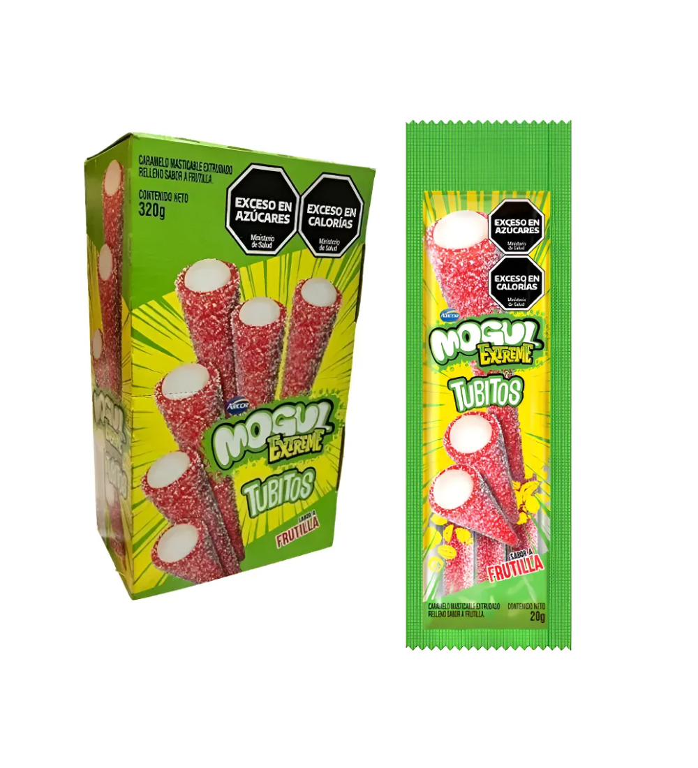¡Preparate para una explosión de sabor con los Tubitos Mogul Extreme Frutilla! Estas gomitas con forma de tubo y relleno de frutilla son irresistibles. Perfectas para compartir con amigos, llevar al colegio o disfrutar en cualquier momento del día. ¡Un sabor extremo que te va a encantar!