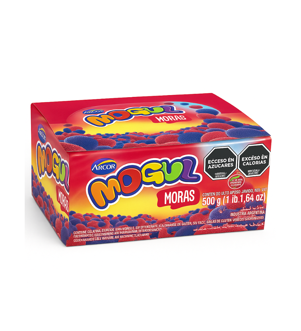 ¡Llevate estas mini Mogul Moras y disfrutá de un clásico en tamaño perfecto para tu bolsillo! Ideal para calmar antojos dulces en cualquier momento del día. Cada paquete trae 10 unidades de estas gomitas suaves y deliciosas con sabor a mora. Son ideales para sumar a la vianda de los chicos, tener en el auto o simplemente disfrutar como un pequeño gustito después del almuerzo. ¡No te quedes sin probarlas!
