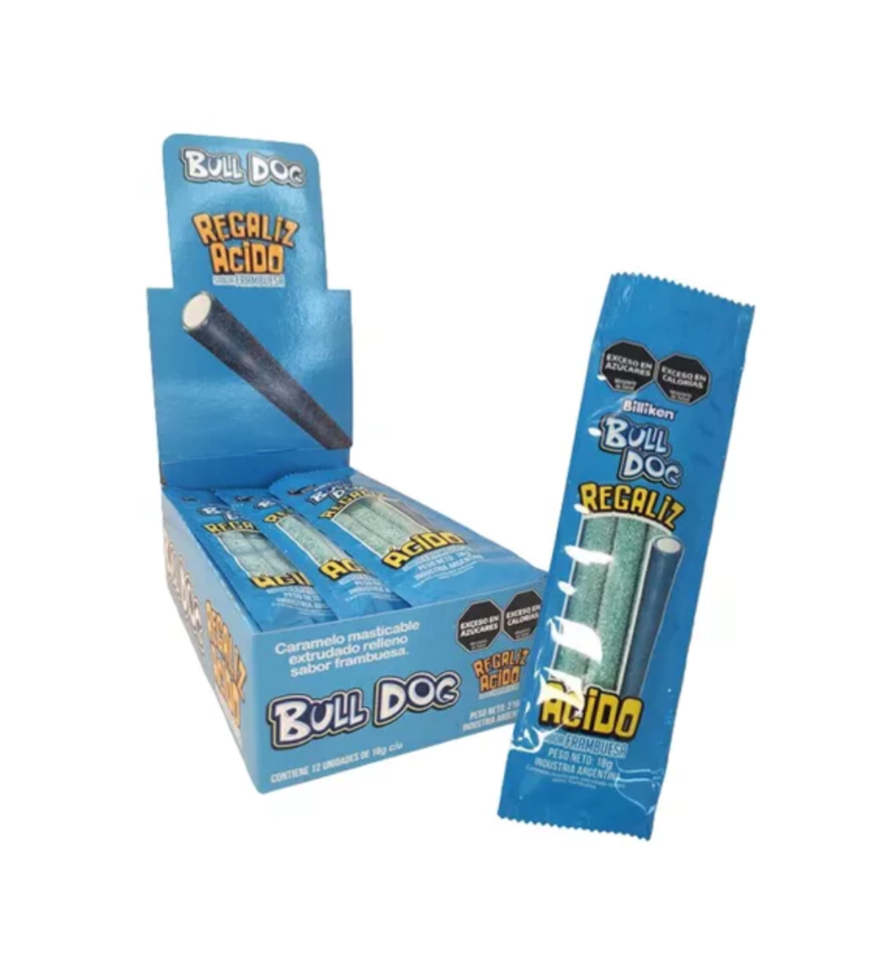 REGALIZ BULL DOG FRAMBUESA X 12 UNIDADES