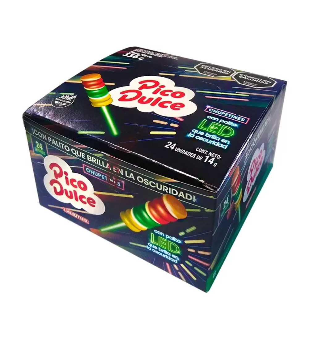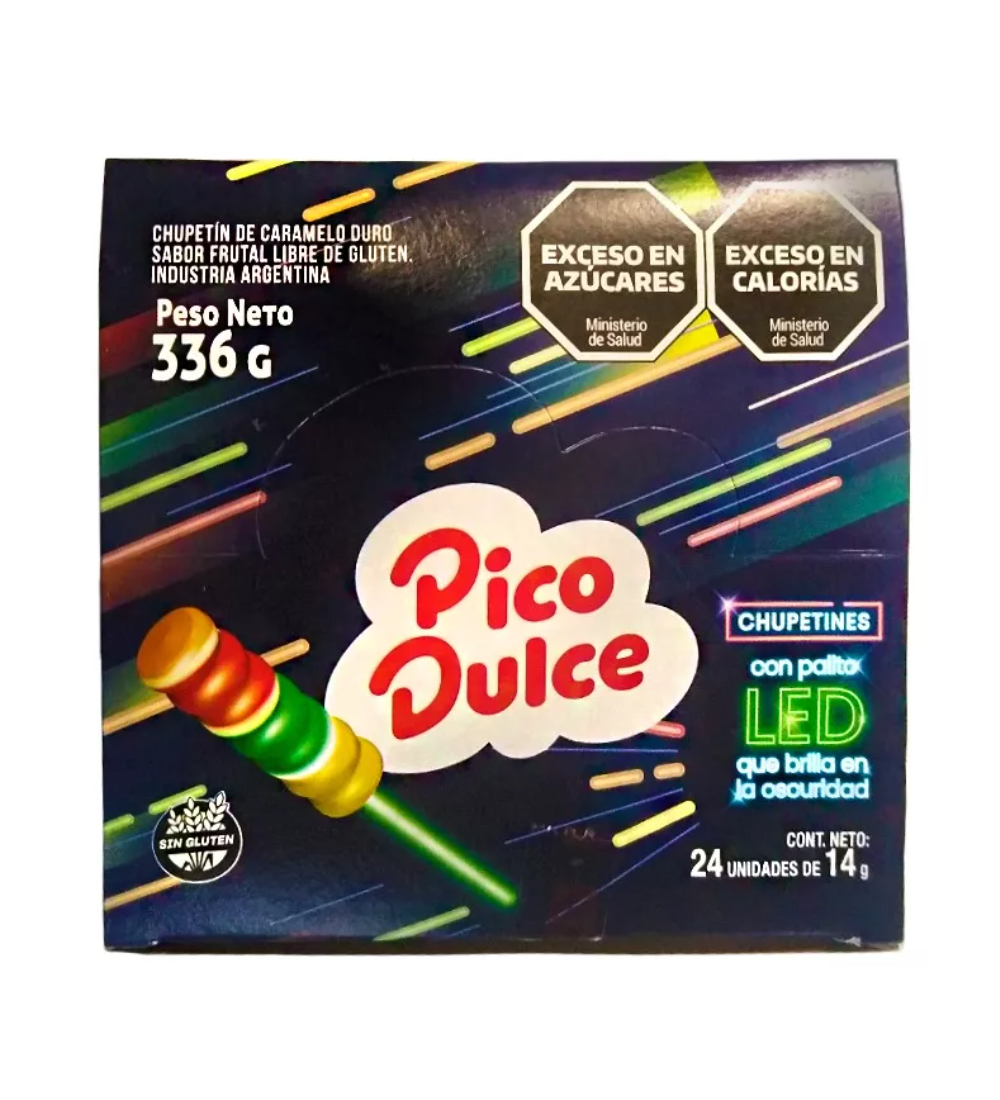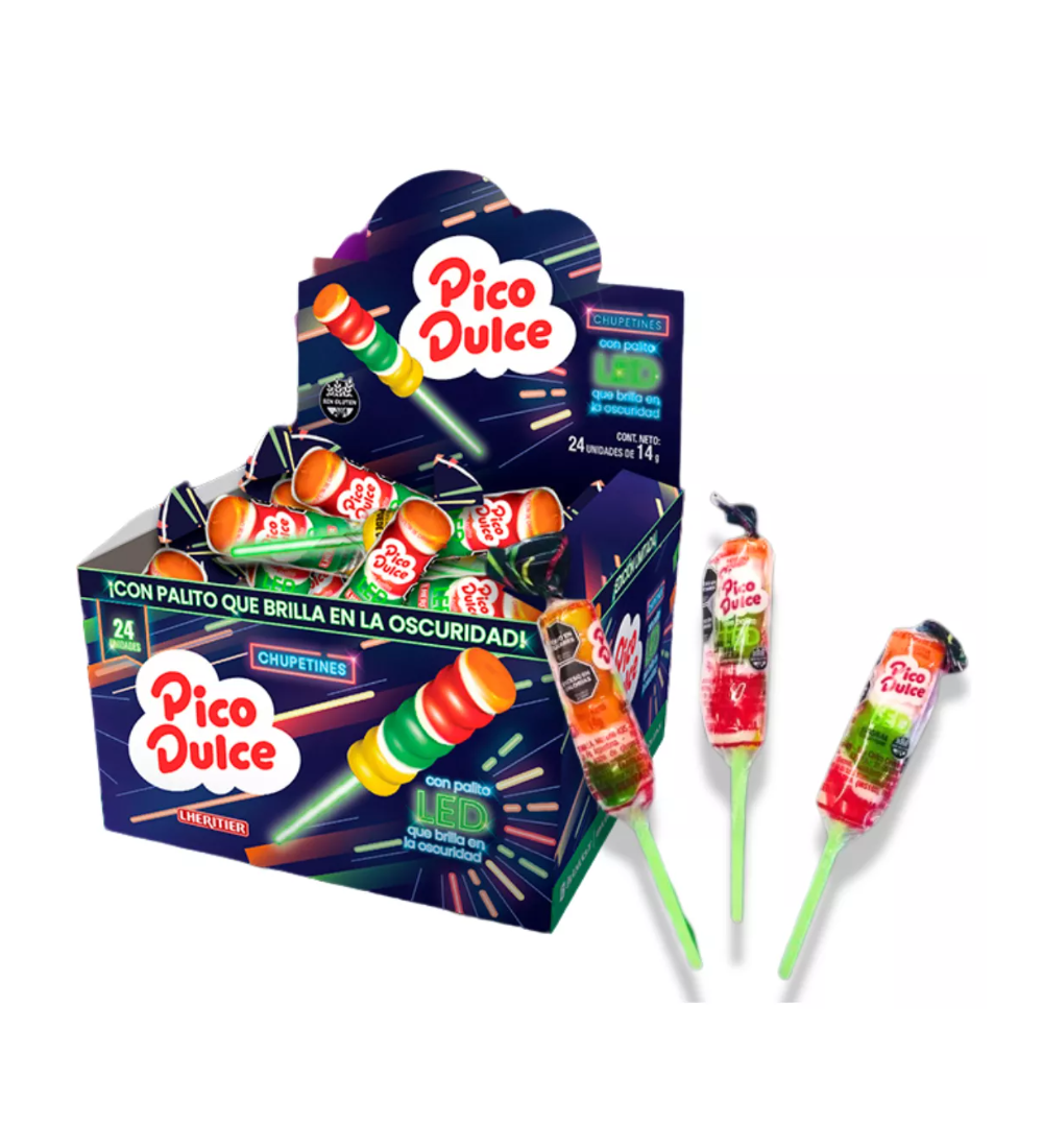 Sorprendé a todos con el chupetín Pico Dulce con palito LED, ideal para fiestas y eventos.