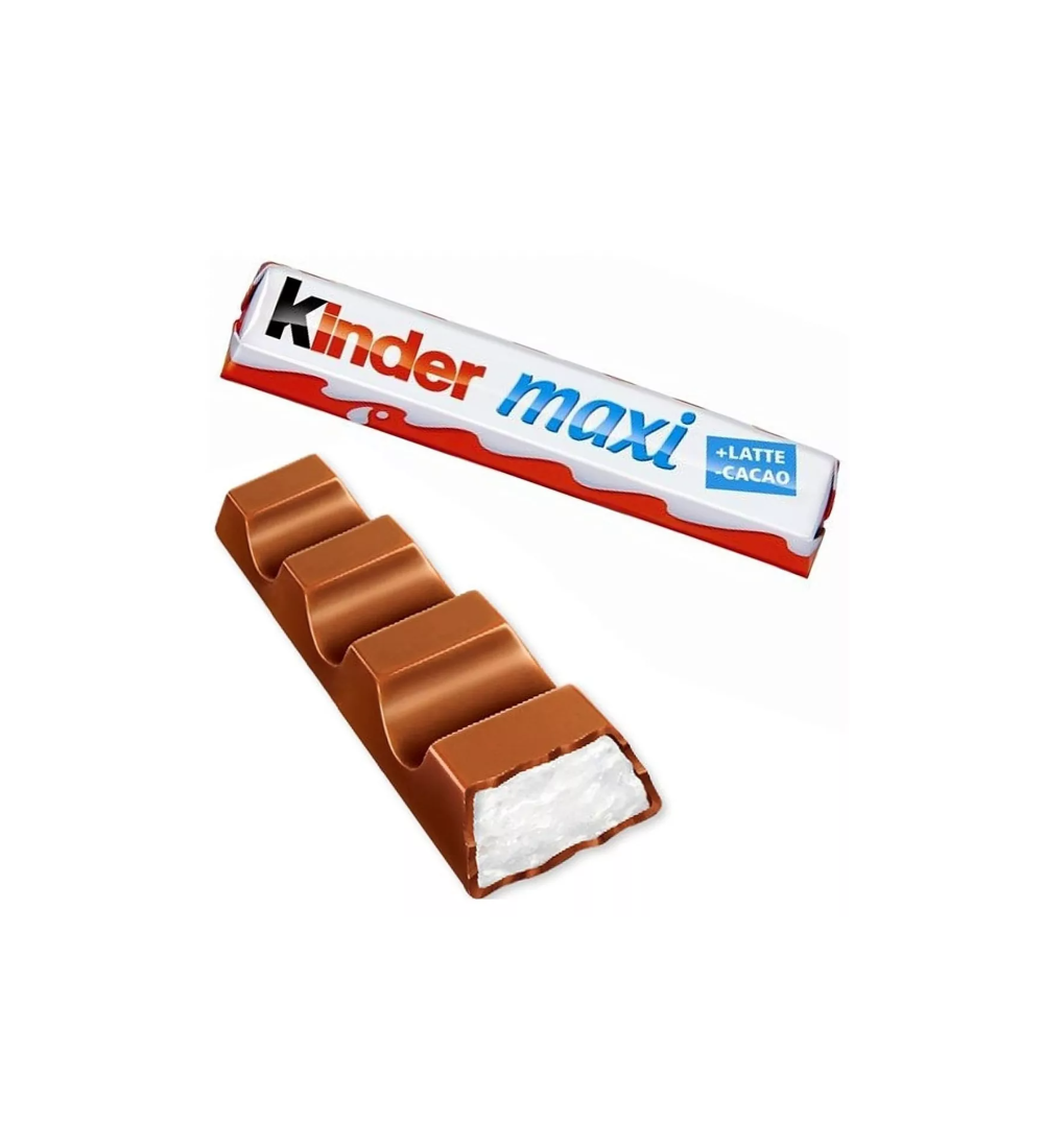 Kinder Maxi, el clásico chocolate con leche y cremoso relleno lácteo que encanta a todos.