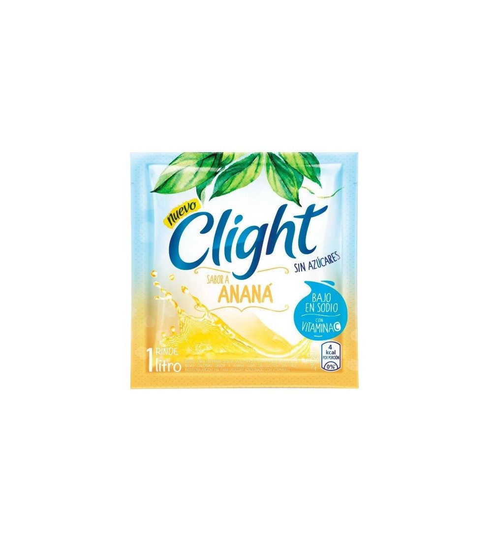 Refrescate con el delicioso sabor tropical del jugo Clight de ananá. Prepará un jugo light y bajo en calorías en segundos. Ideal para mantenerte hidratado durante todo el día, sin renunciar al sabor. Cada sobre rinde para un litro de jugo, perfecto para compartir con amigos y familiares. Llevá la caja de 20 unidades y tené siempre a mano tu jugo favorito. ¡Una opción saludable y deliciosa!
