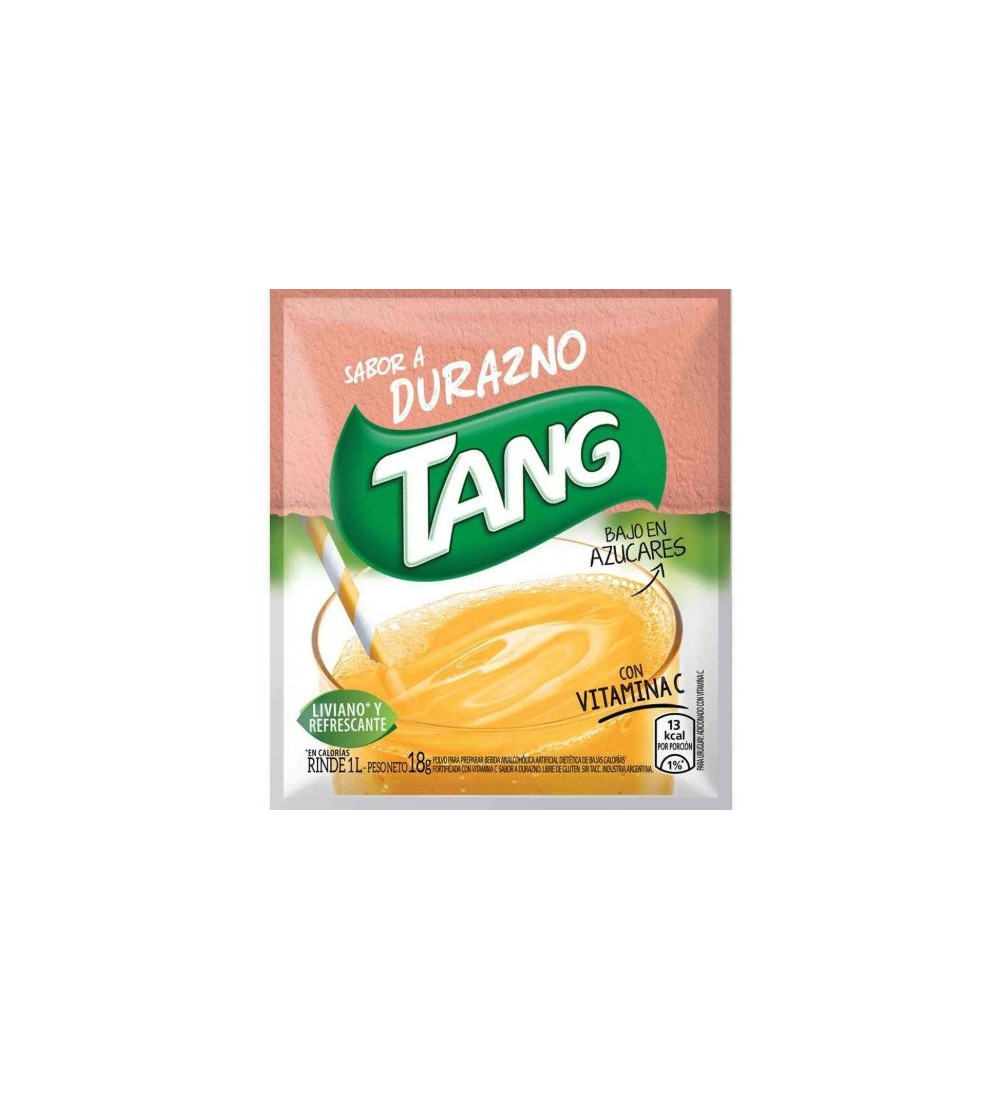 Jugo Tang Durazno en polvo, pack de 20 unidades para un sabor dulce y refrescante.