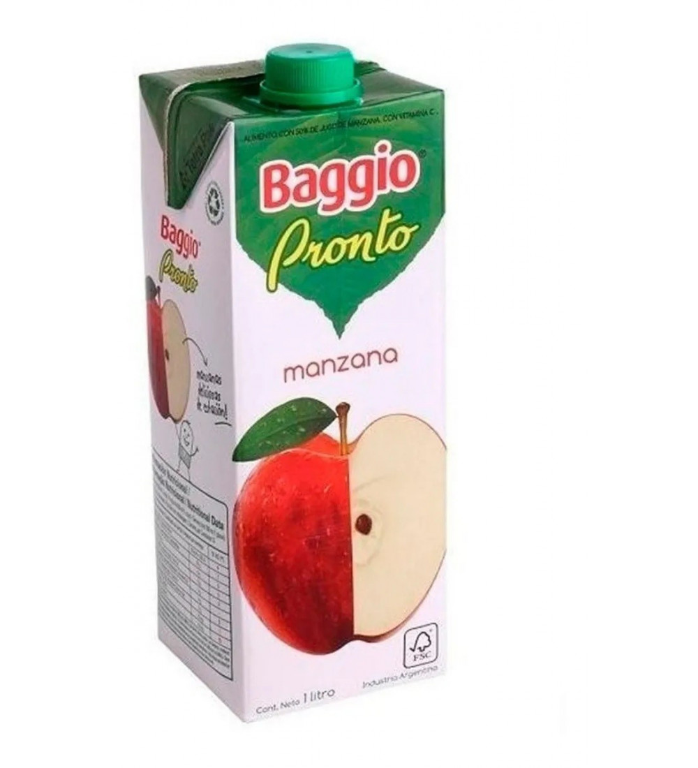 Disfrutá del sabor suave y dulce de la manzana con el Jugo Baggio, perfecto para refrescarte.
