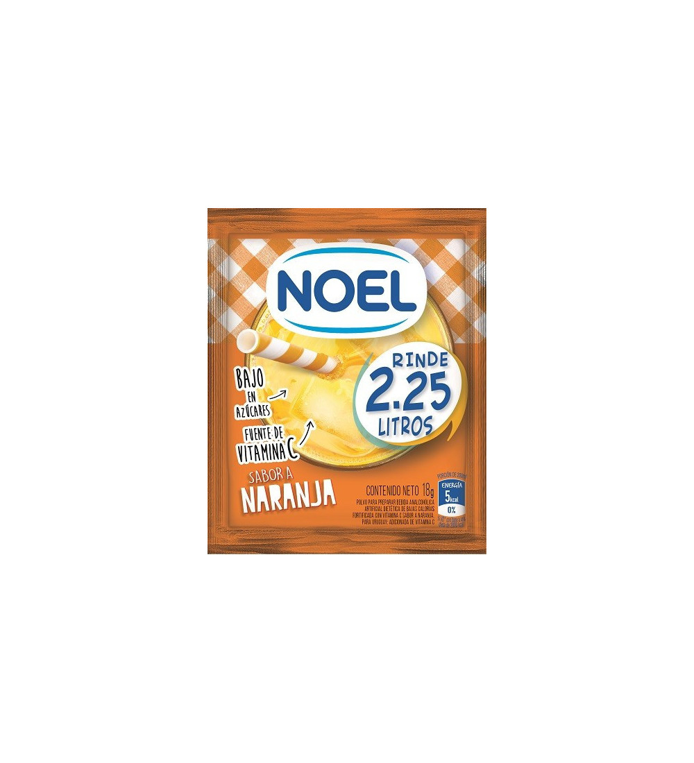 Disfrutá del clásico sabor del Jugo Noel de Naranja en polvo, ideal para refrescarte en cualquier momento.