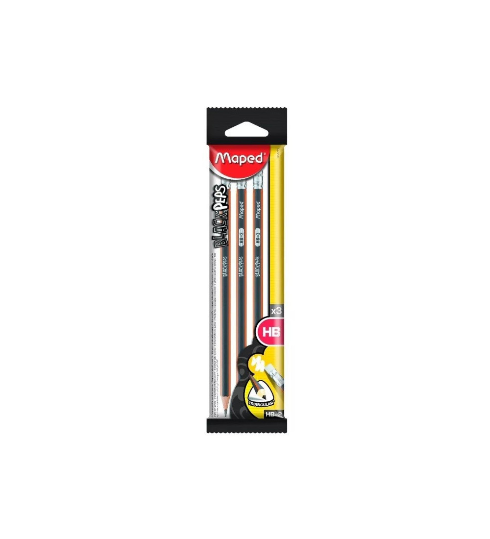 ¡Escribí y corregí sin problemas con este pack de lápices Maped! Incluye 3 lápices de grafito de alta calidad con goma incorporada, perfectos para escribir, dibujar y tomar apuntes. Su diseño ergonómico te brinda comodidad y control, mientras que la goma te permite corregir errores de forma rápida y sencilla. Ideales para la escuela, la oficina o el hogar, estos lápices Maped son un imprescindible para cualquier persona que valore la calidad y la precisión.