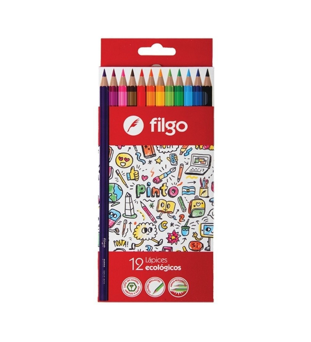 Expresá tu creatividad con este pack de 12 lápices de color Filgo de colores vibrantes.