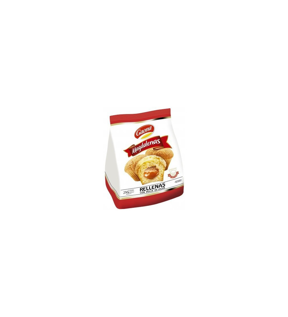 Deleitate con las Magdalenas Gaona rellenas de dulce de leche, una combinación irresistible que te va a encantar. El sabor tradicional de la magdalena se une al dulce de leche para crear un bocado perfecto para cualquier hora del día. Ideales para la merienda, el desayuno o simplemente para darte un capricho. Compartilas con quien más quieras o disfrutalas solo, ¡vos decidís! Llevá a tu casa este sabor inigualable y hacé de cada momento algo especial.